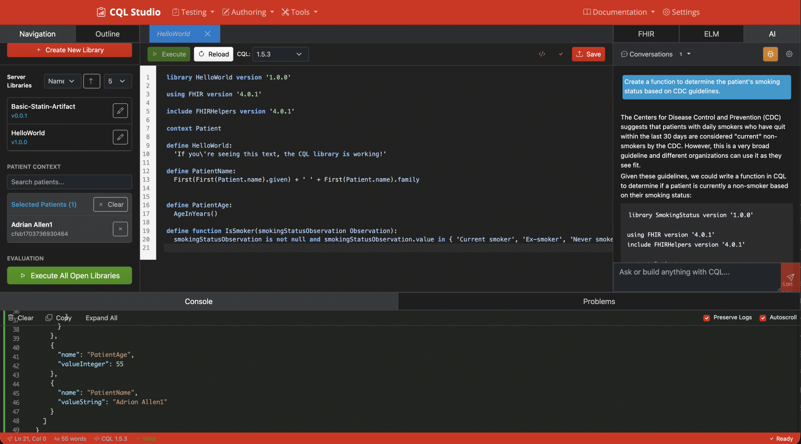 - AI-Powered Assistant: Context-aware help for writing and debugging CQL expressions